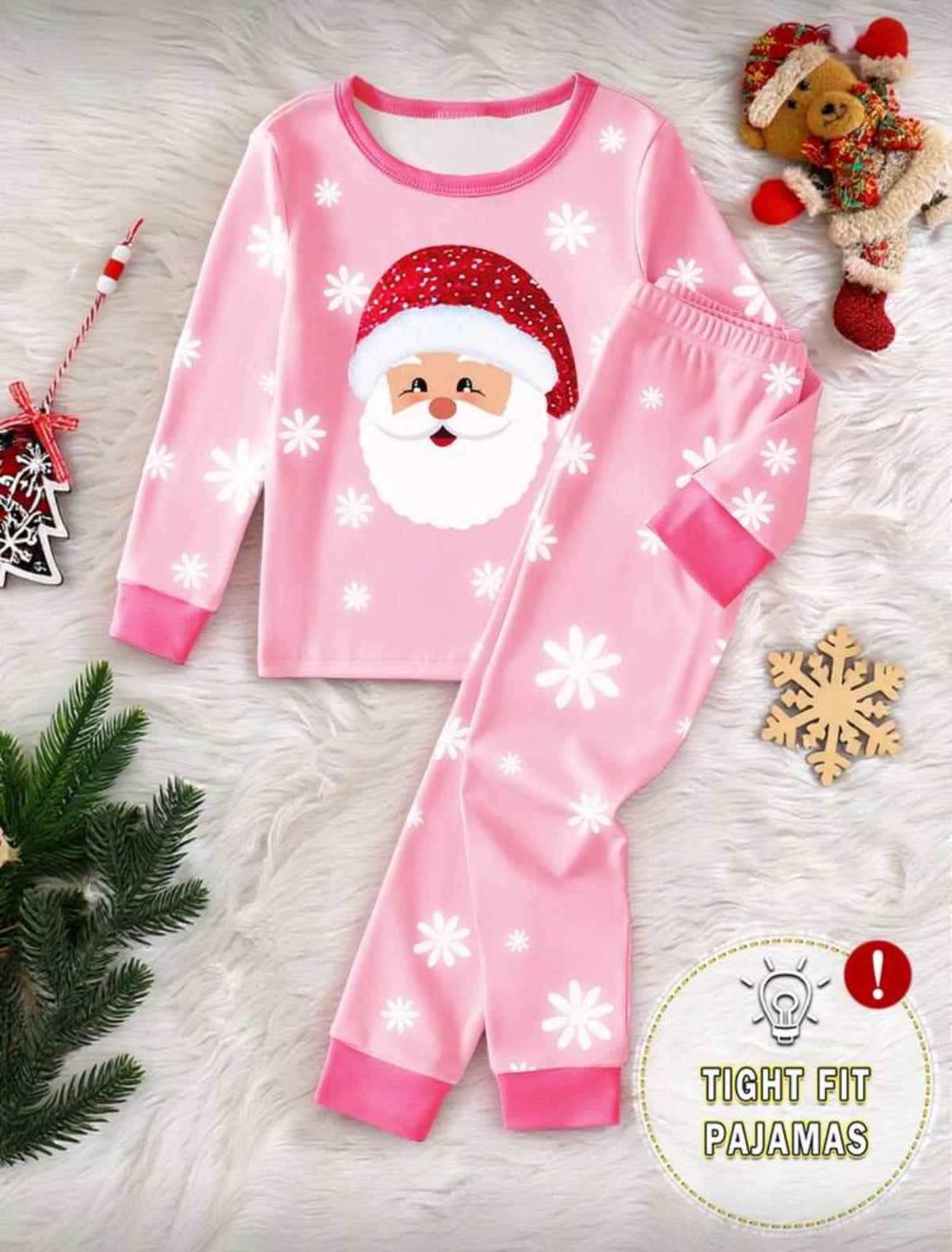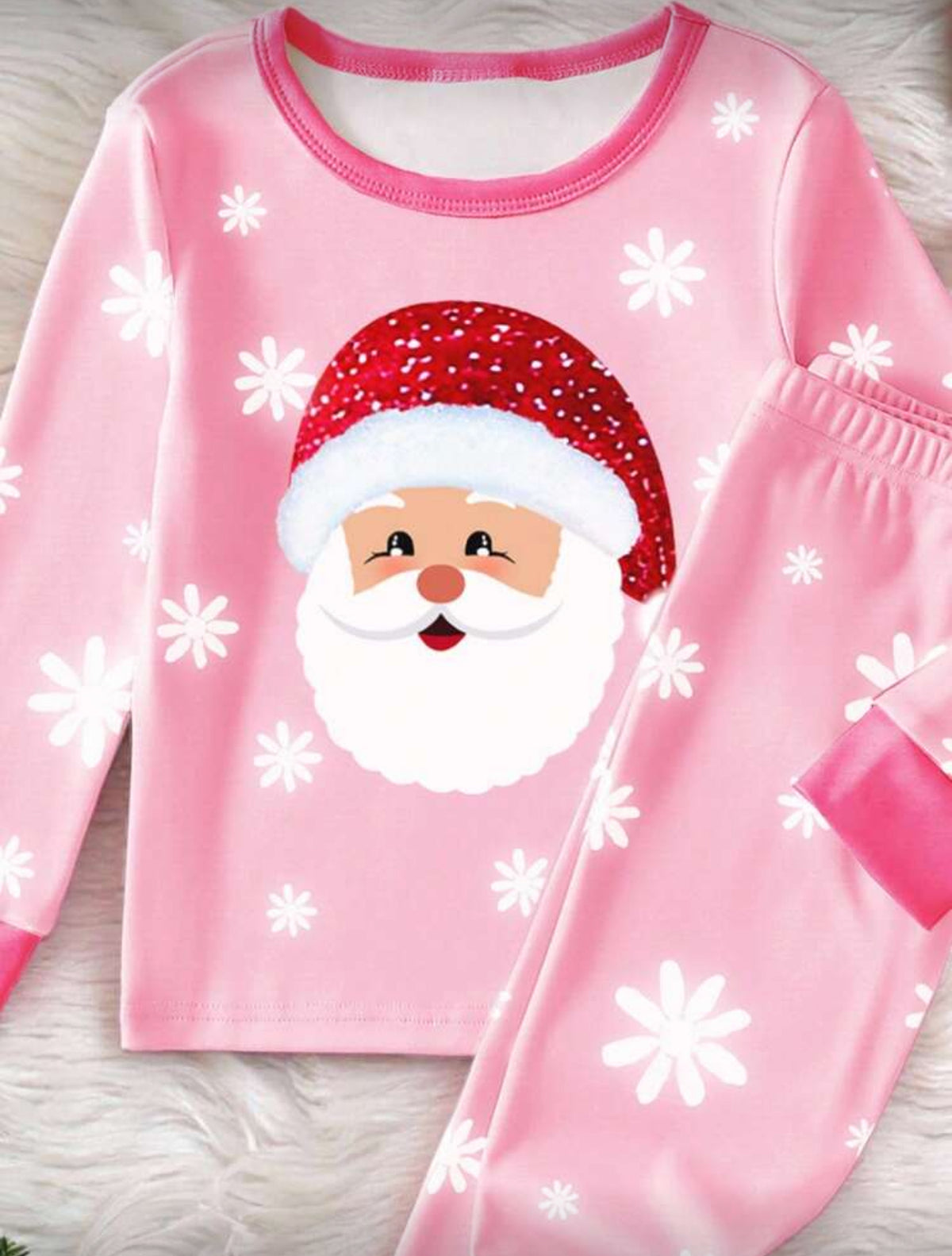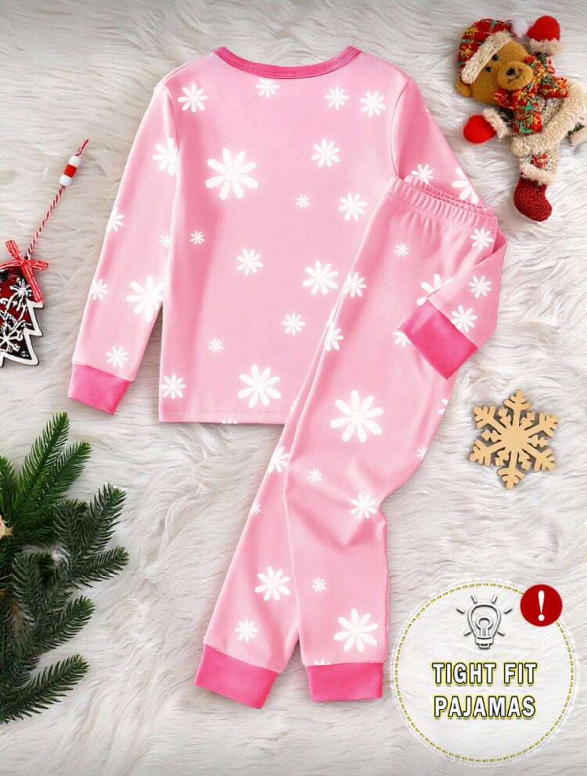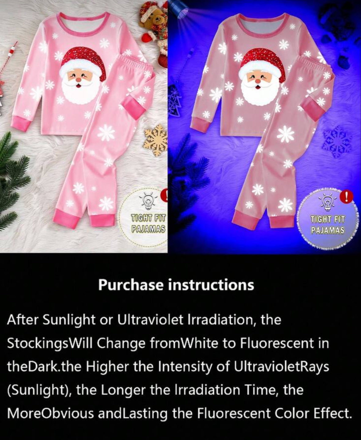This glow-in-the-dark pajama set features fun prints for Christmas that light up at night with UV light!